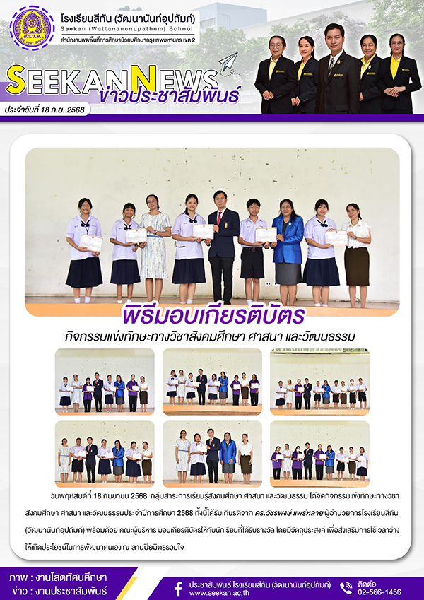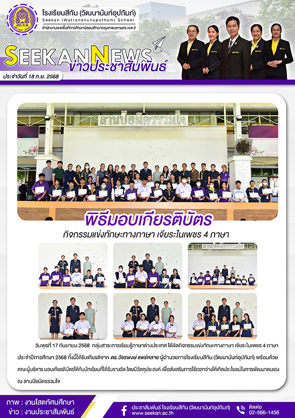 กิจกรรมประจำเดือนกันยายน 2568